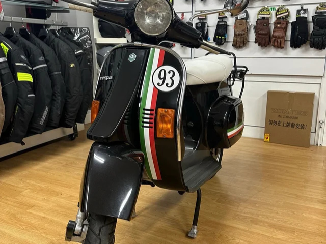 Preciosa Vespa 125cc en color negro con detalles en blanco y rojo. Se encuentra en muy buen estado– Modelo clásico con un diseño elegante. – Color negro con franja tricolor italiana. – Incluye portaequipajes trasero. Se entrega transferida a nombre del comprador.